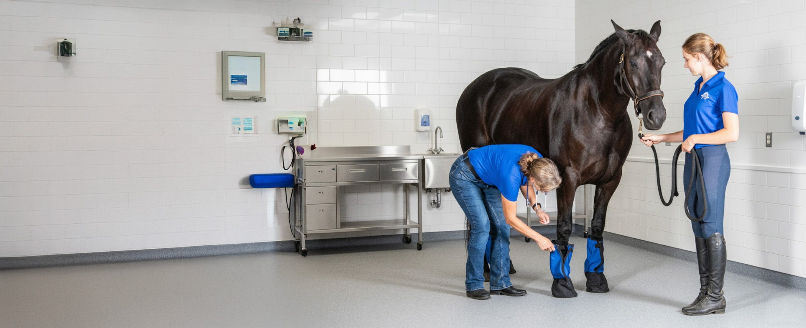Horses remain comfortable and free to move, lie down, and rest naturally during treatment—reducing stress and supporting overall well-being.